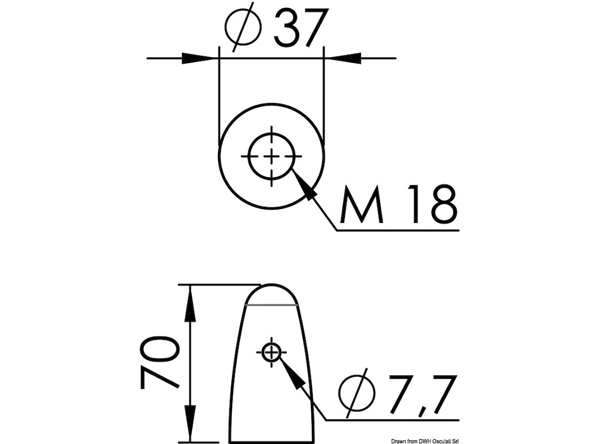 • Descrizione: Ogiva in zinco per elica Ø 22/25/30 mm