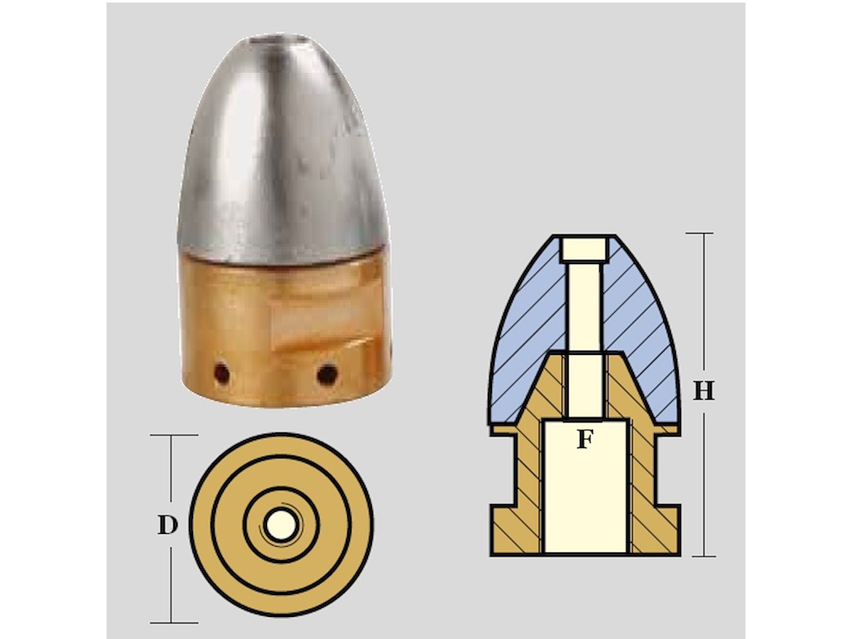 OGIVA TIPO RIVA COMPLETA ØASSE MM 35/50 DIMENSIONI D=52,H=80,F=30X2,00