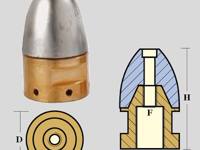 OGIVA TIPO RIVA COMPLETA ØASSE MM 20/30 DIMENSIONI D=38,H=66 NON FILETTATO