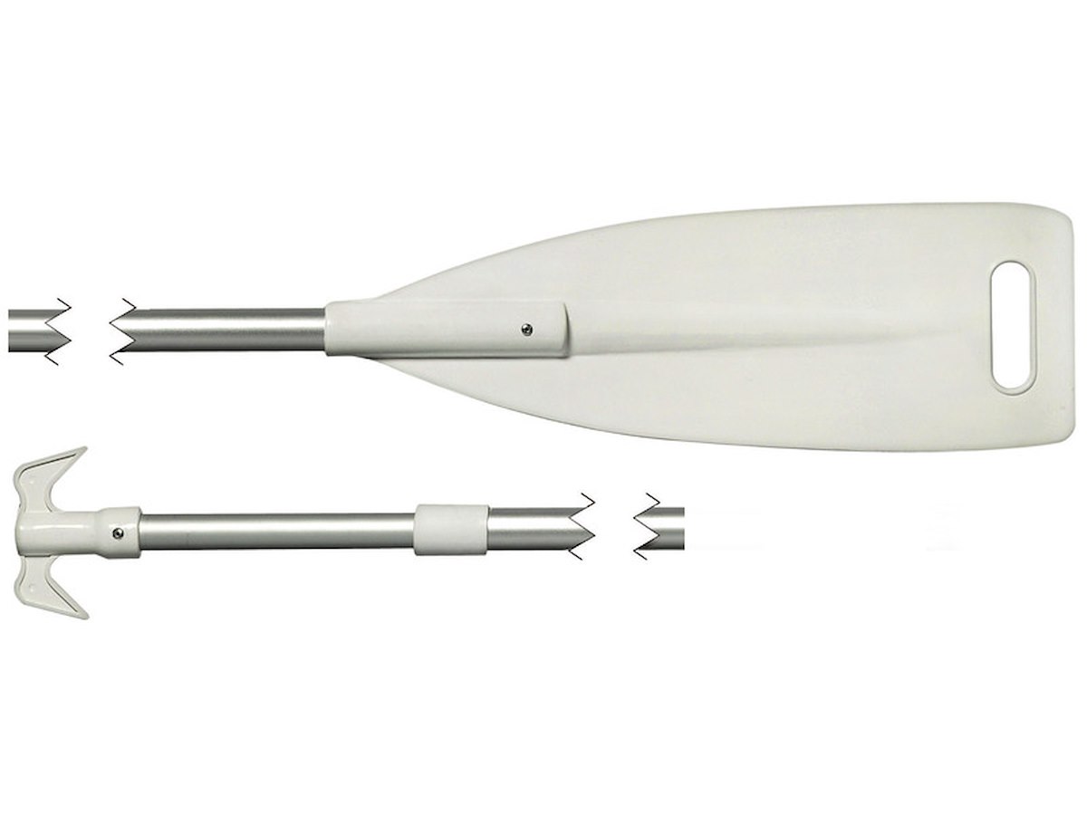 Pale in ABS bianco, gancio d’accosto in nylon bianco, manico in alluminio anodizzato. Articolo robusto e funzionale.