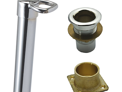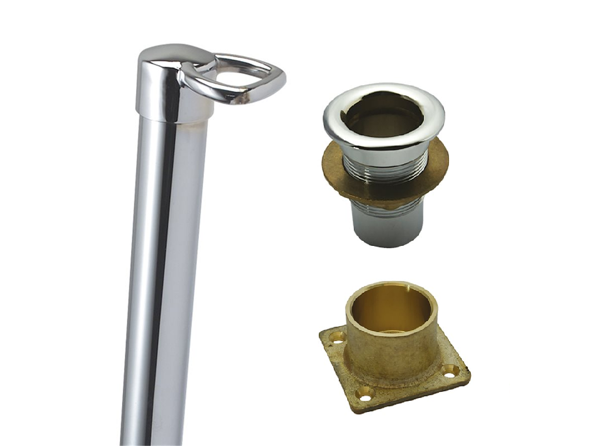 Palo traino sci in acciaio inox Ø40 mm, completo di boccola e base in ottone.