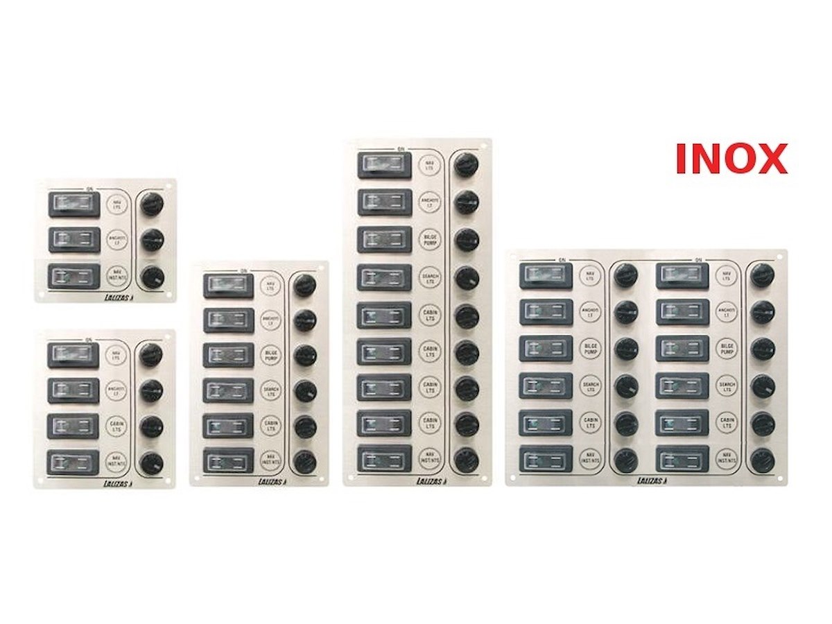 PANNELLI DI COMANDO ULTRA INOX INTERRUTTORI 9 (4ON-OFF,1ON*-OFF,2ON-OFF-ON,2ON-OFF-ON*) LXH MM 240X100