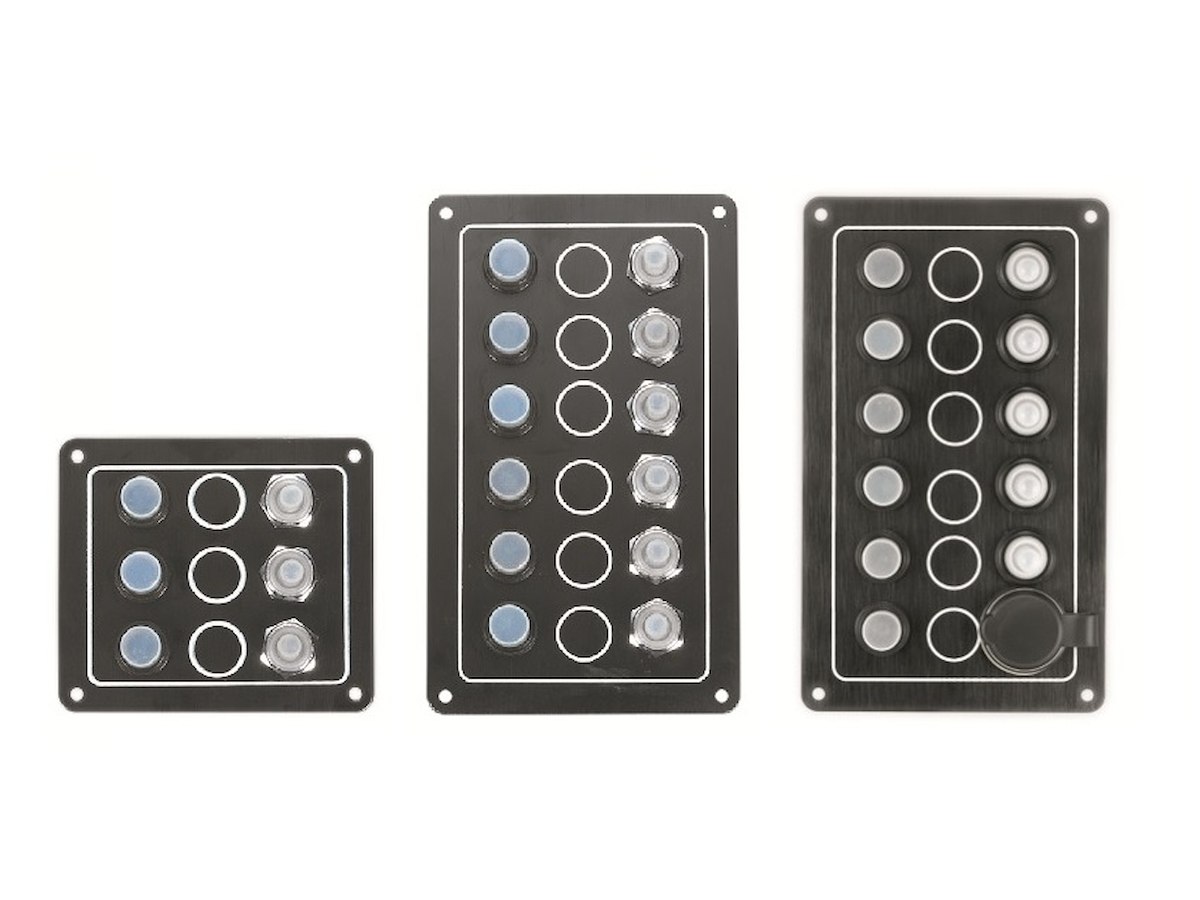 PANNELLI ELITE N.INTERRUTTORI 5 + PRESA 12V CIRCUIT BREAKERS 5AX1 10AX2 15AX3
