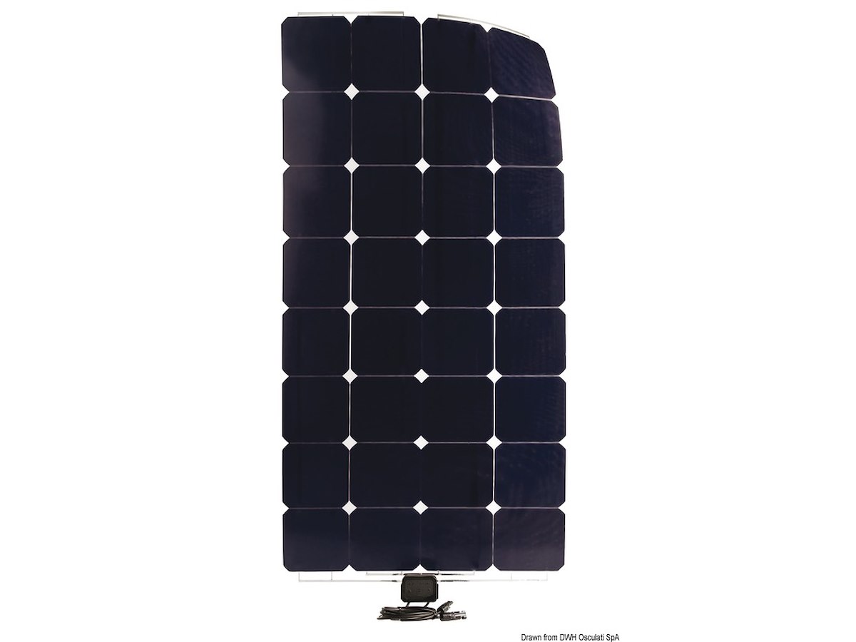 Fabbricati con celle solari aerospaziali ad alta performance. Sono pannelli di ultima generazione ultrasottili, solo 1,7 mm, e ultraflessibili. Efficienza celle mono 17,25%. Il pannello è composto da un sandwich formato da un supporto plastico + celle solari + rivestimento superficiale in resina epossidico UV resistente. Il fissaggio avviene tramite biadesivo. Cavo di connessione con spina MC4 incluso.