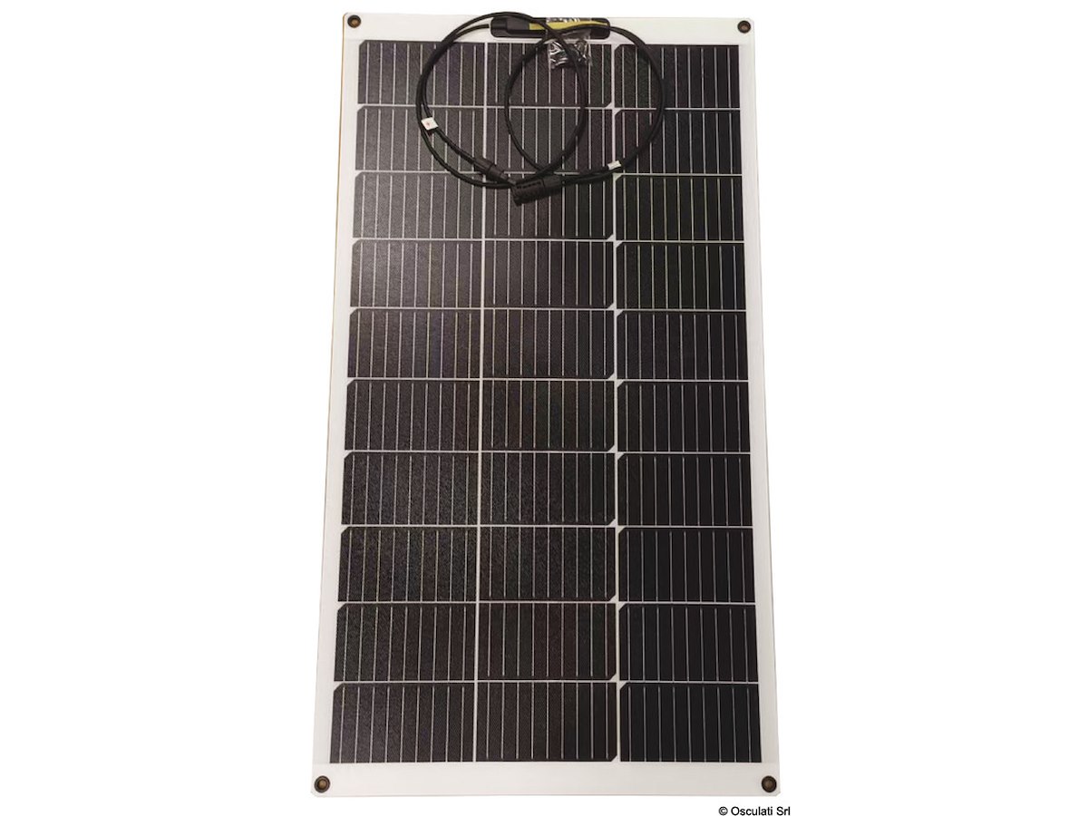 Fabbricati con celle solari aerospaziali ad alta performance. Sono pannelli di ultima generazione ultrasottili, e ultraflessibili. Efficienza celle mono 23%. Il pannello è composto da un sandwich formato da un supporto plastico + celle solari + rivestimento superficiale in resina epossidico UV resistente. Il fissaggio avviene tramite biadesivo. Cavo di connessione con spina MC4 incluso.