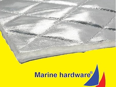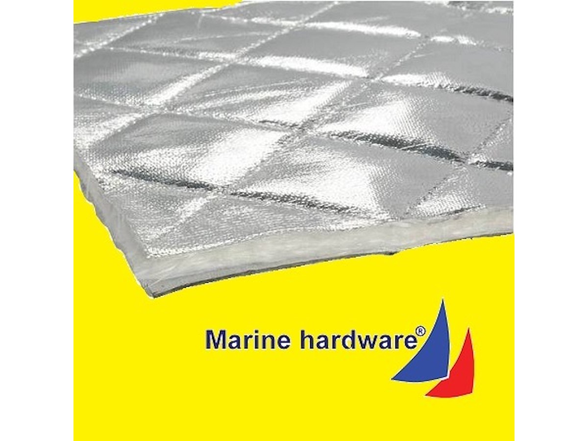 pannello a 3 strati: lato a vista costituito da una pellicola di color alluminio con cuciture a rombo, parte interna in feltro in vetro agugliato e il retro composta da una massa fonoimpedente adesiva.