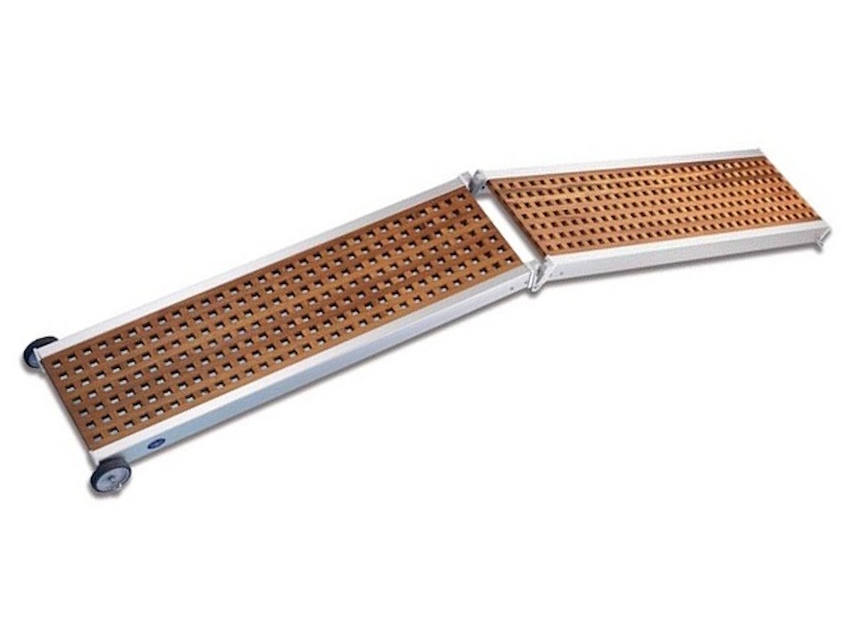 passerella pieghevole rinforzata con calpestio in carabottino con ruote e perno pivotante