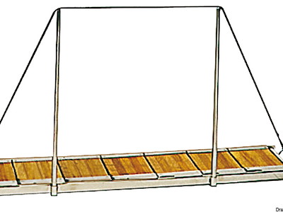 Con piano/gradini in legno. Struttura in acciaio inox lucidato a specchio.