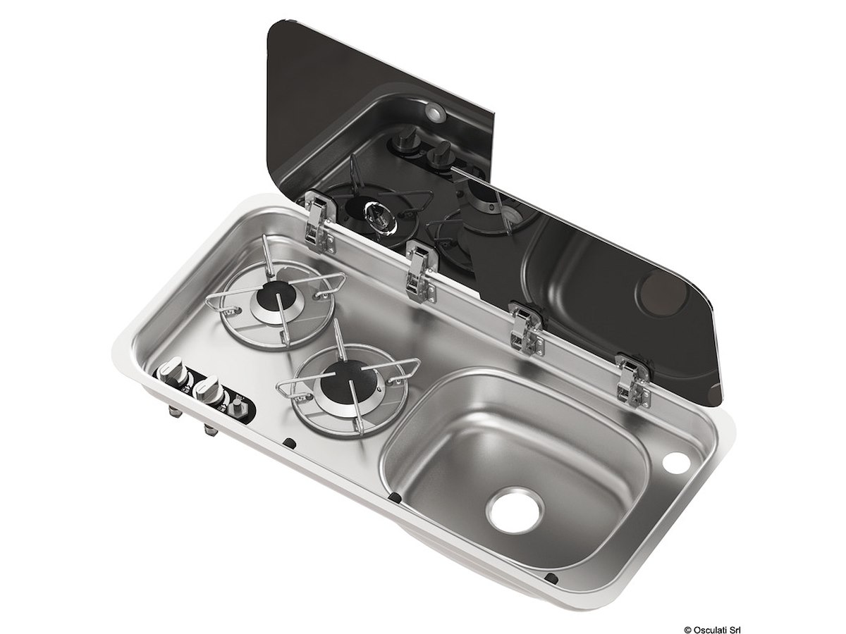 Piano cottura 2 fuochi - lavello SX con miscelatore