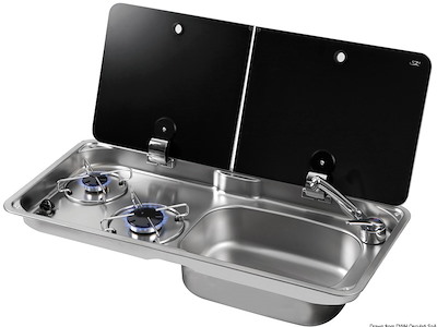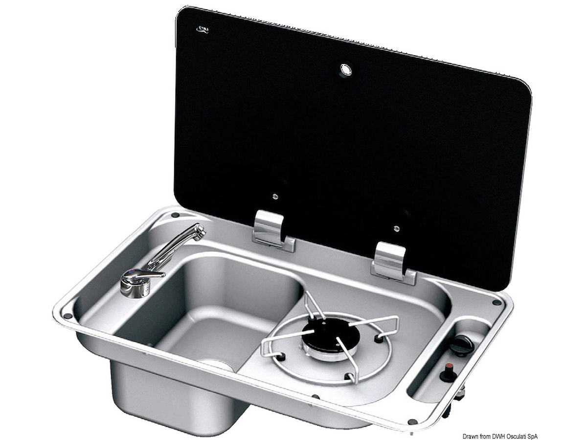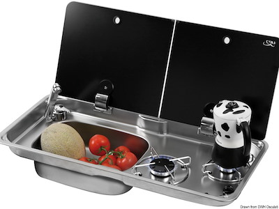 Completo di lavello e rubinetto con miscelatore acqua calda/fredda.