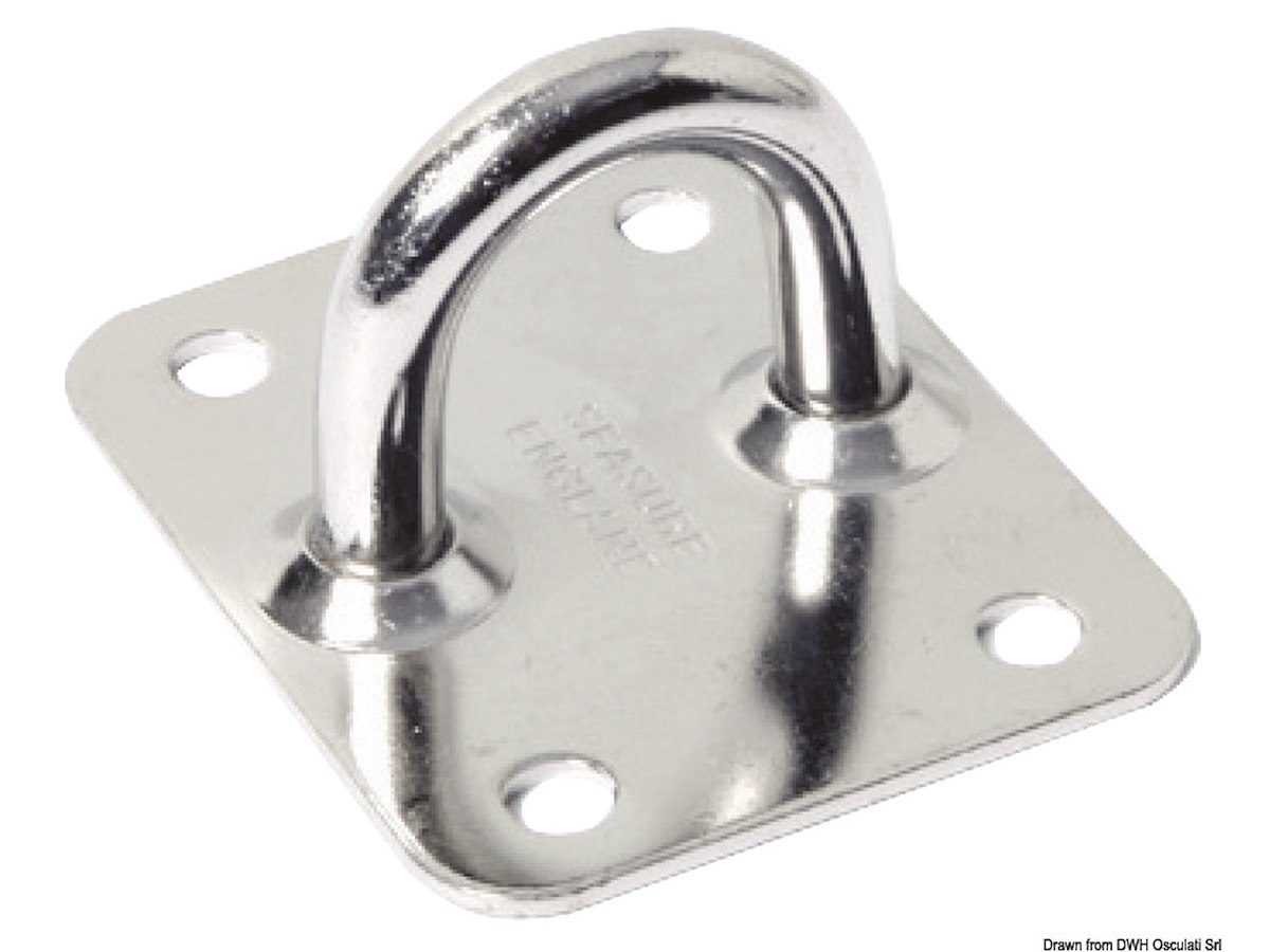 Piastra con quattro fori in acciaio inox 316 , con base piana. Piastra mm: 50x40 Tondo Ø mm: 6 Ø fori mm: 5