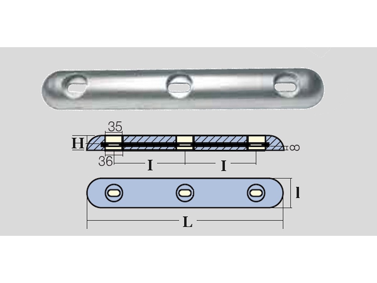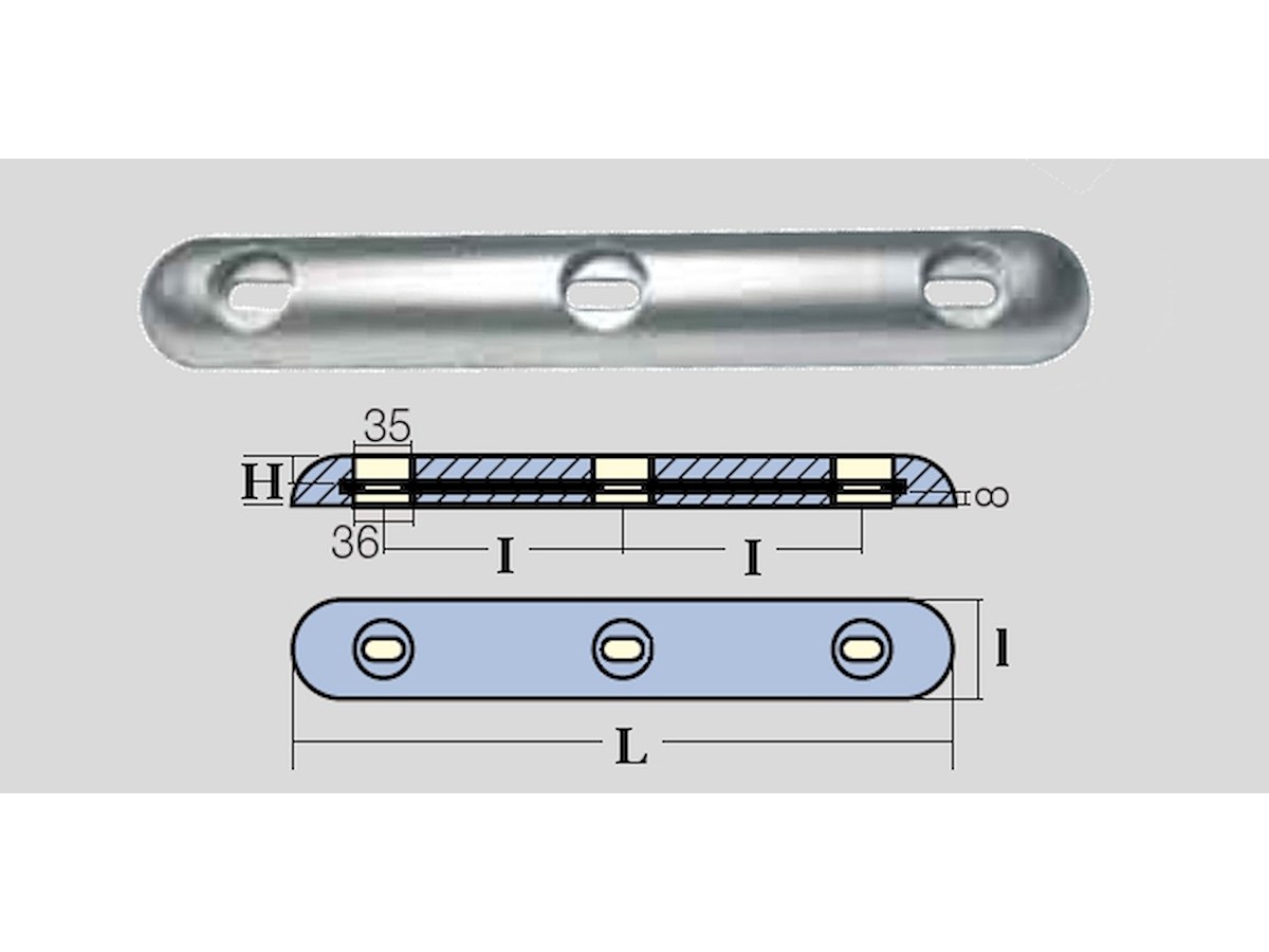 PIASTRA ZINCO FAIRLINE DIMENSIONI L=400,L=60,H=30,I=145 PESO (KG) 3,50