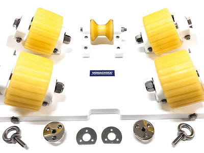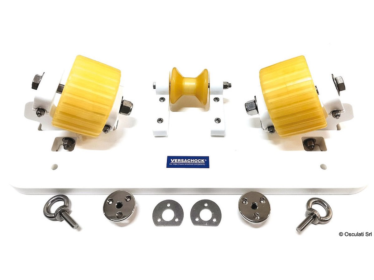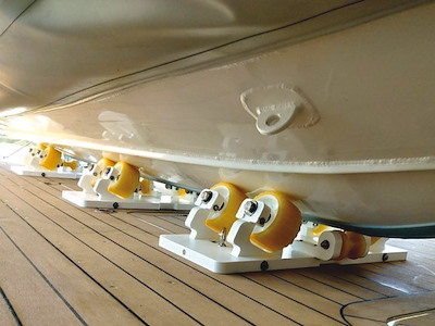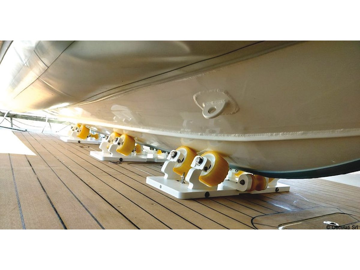 Dotate di rulli in polietilene da 13 cm si autoregolano, con un escursione da 0-24°, adattandosi alla forma dello scafo; la ruota centrale da 8 cm protegge la chiglia.