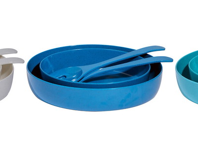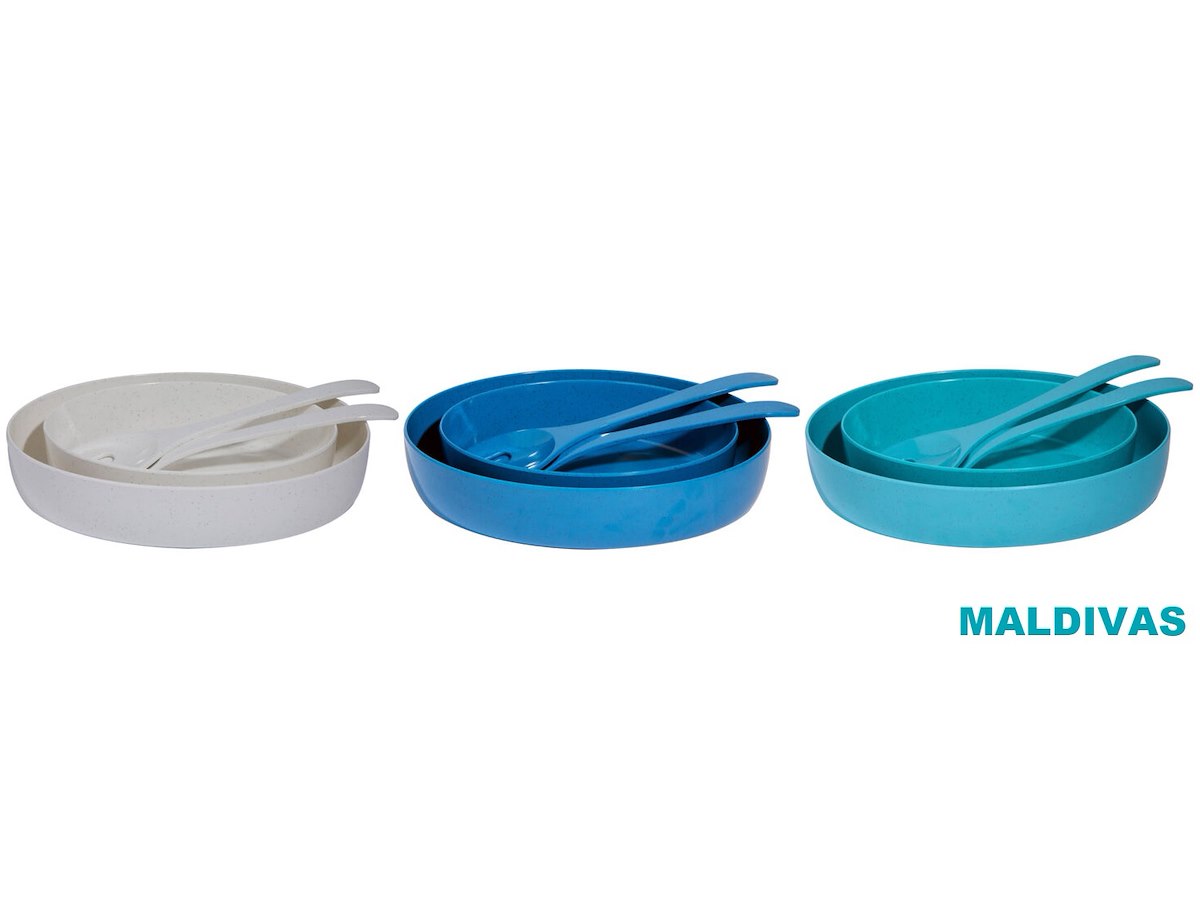 Set di due insalatiere ovali in melamina con posate da servizio, parte della collezione Maldivas. Moderne ed eleganti, ideali per ogni occasione.