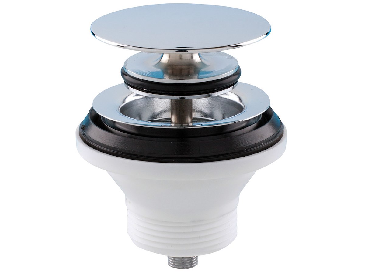 Piletta basket con raccordo 1 ¼” e tappo a fungo. Tappo asportabile, design elegante, facilità di pulizia.