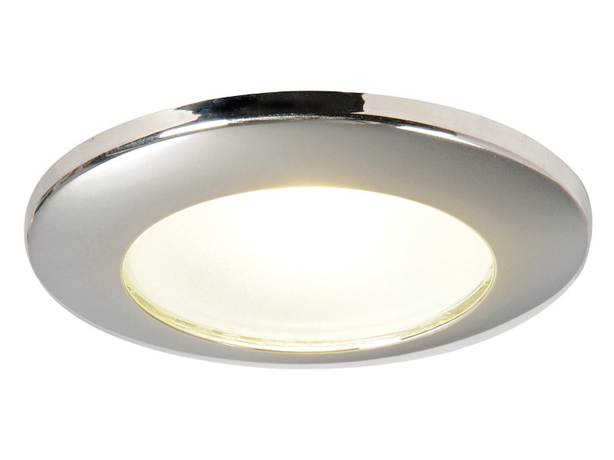 Corpo in alluminio, ghiera in acciaio inox. Sistema di fissaggio con viti nascoste dal frontalino.