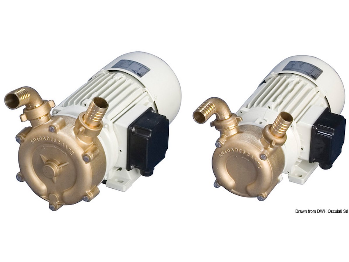 Girante in bronzo. Può girare a secco senza rovinarsi. Autoaspirante fino a 5/6 metri di profondità. Utilizzabile per travaso gasolio.