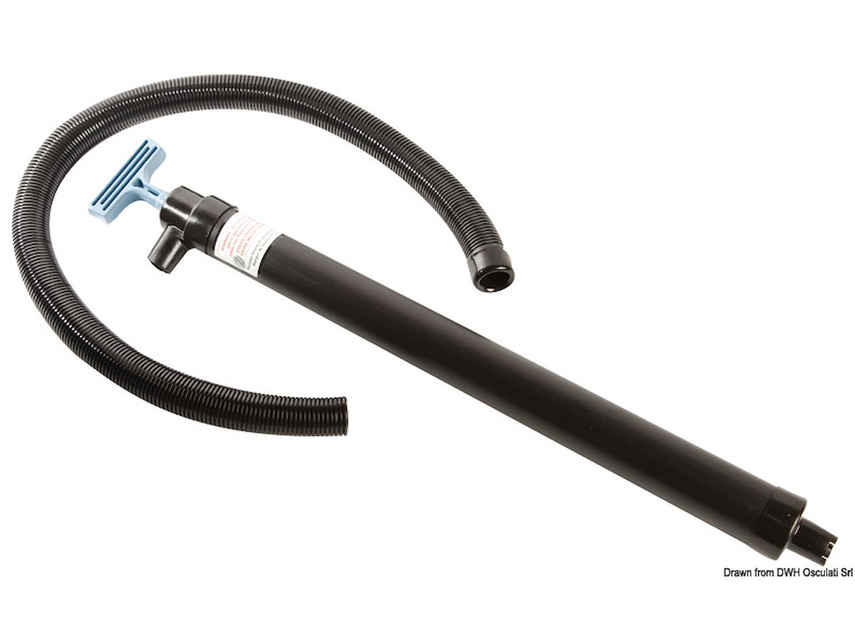 Pompa di ottima qualità. Completa di tubo di scarico spiralato e bocchello terminale. Adatta al travaso di gasolio. Venduta in confezione espositiva.