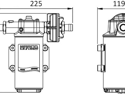 Elettropompa autoadescante ad ingranaggi in bronzo per travaso diesel. Filtro di protezione incluso. Sigla: UP14 V: 12 Portata l/min: 46 Prevalenza m: 4 Consumo A: 30 Pressione bar: 2 Bocche: 3/4"