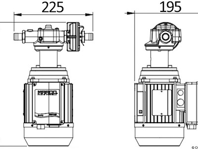 Sigla: UP14-AC V: 230-50Hz Consumo A: 1,7 Portata l/min: 22 Prevalenza m: 3 Pressione bar: 4 Watt: 550 Ingresso: 3/4" Uscita: 3/4" misure mm: 351x225x195