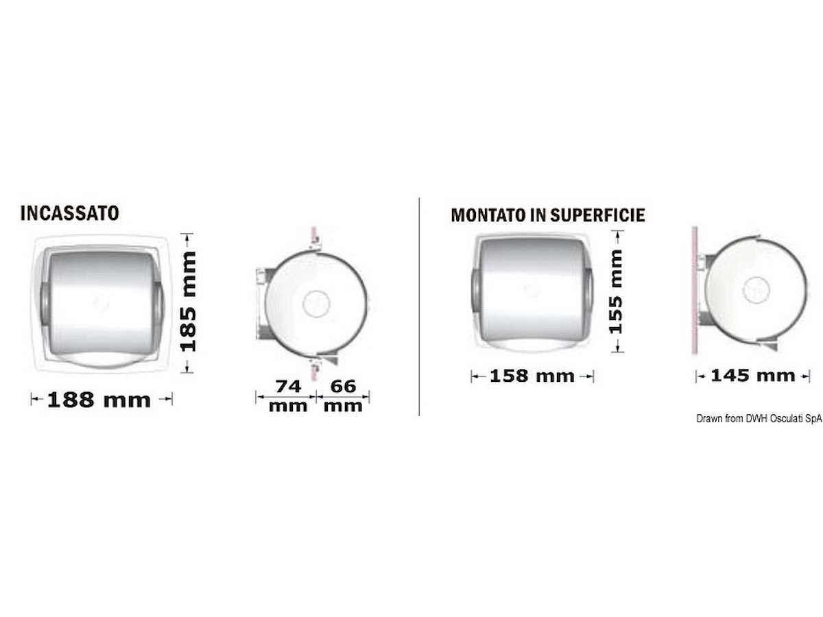 A tenuta stagna, ideale per docce combinate a WC. Plastica ABS sagomata a lunga durata. Funzione automatica di rilascio e riavvolgimento carta. Igienico e facile da pulire, può essere incassato o montato in superficie. Colore bianco RAL 9016.