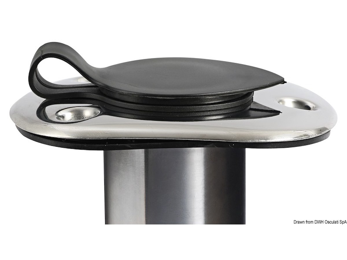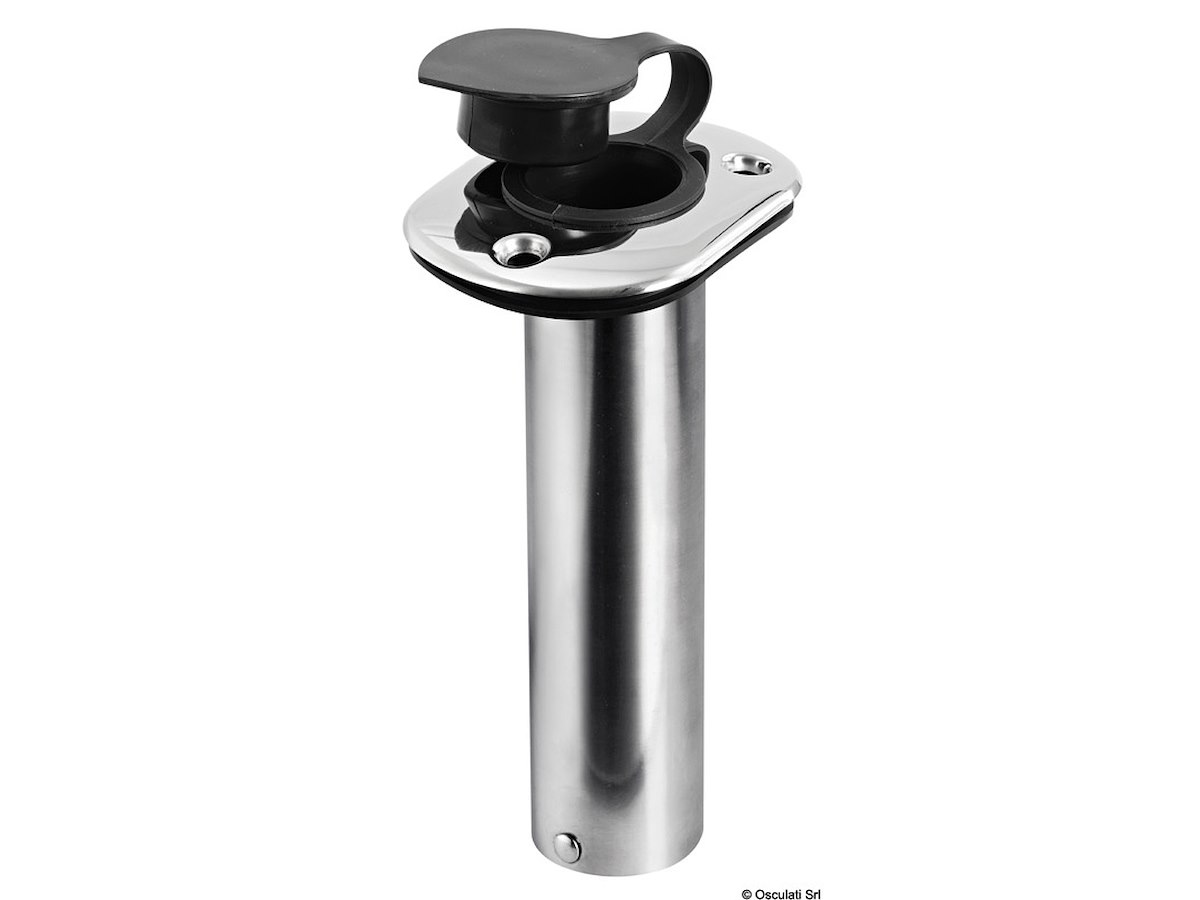 In acciaio inox lucidato a specchio, munito di boccola di protezione in PVC per la canna.