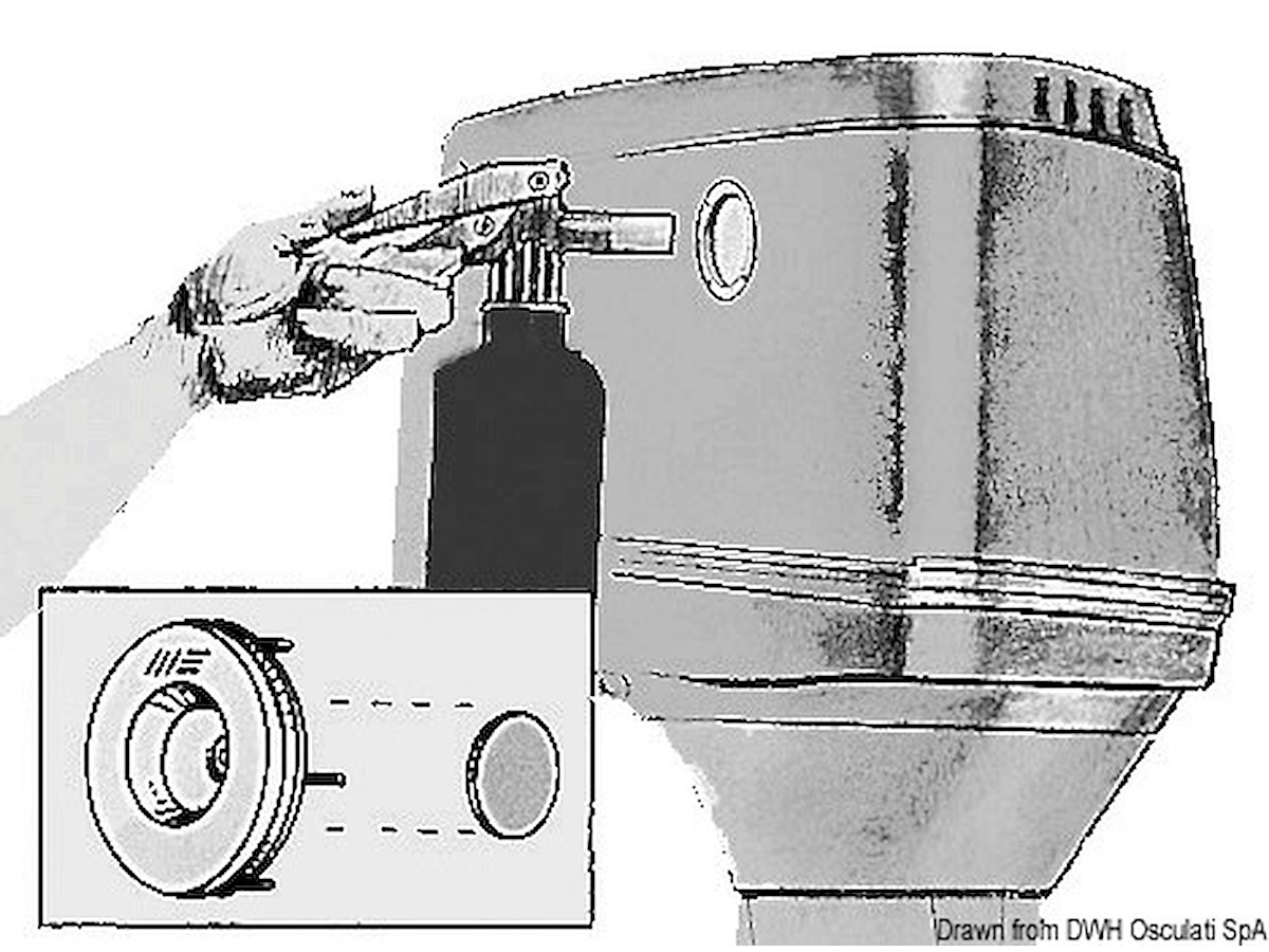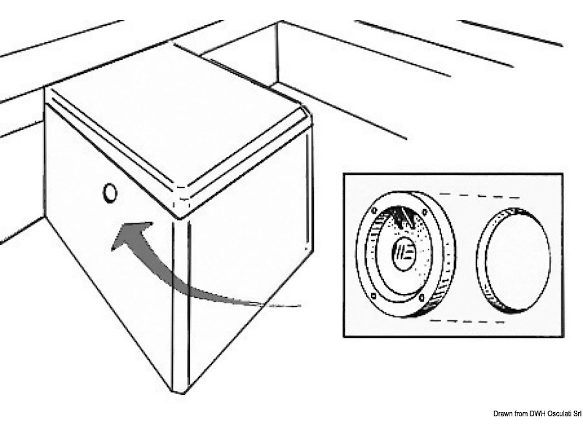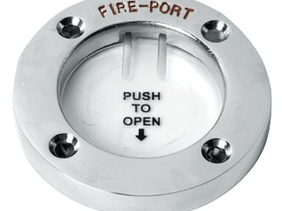Conforme alla direttiva 2013/53/UE e costruito in accordo alla ISO 9094-2. Permette di accedere al vano motore con un estintore, senza aprire il vano. Il foro é chiuso da una membrana in PVC stagna, a sfondamento.