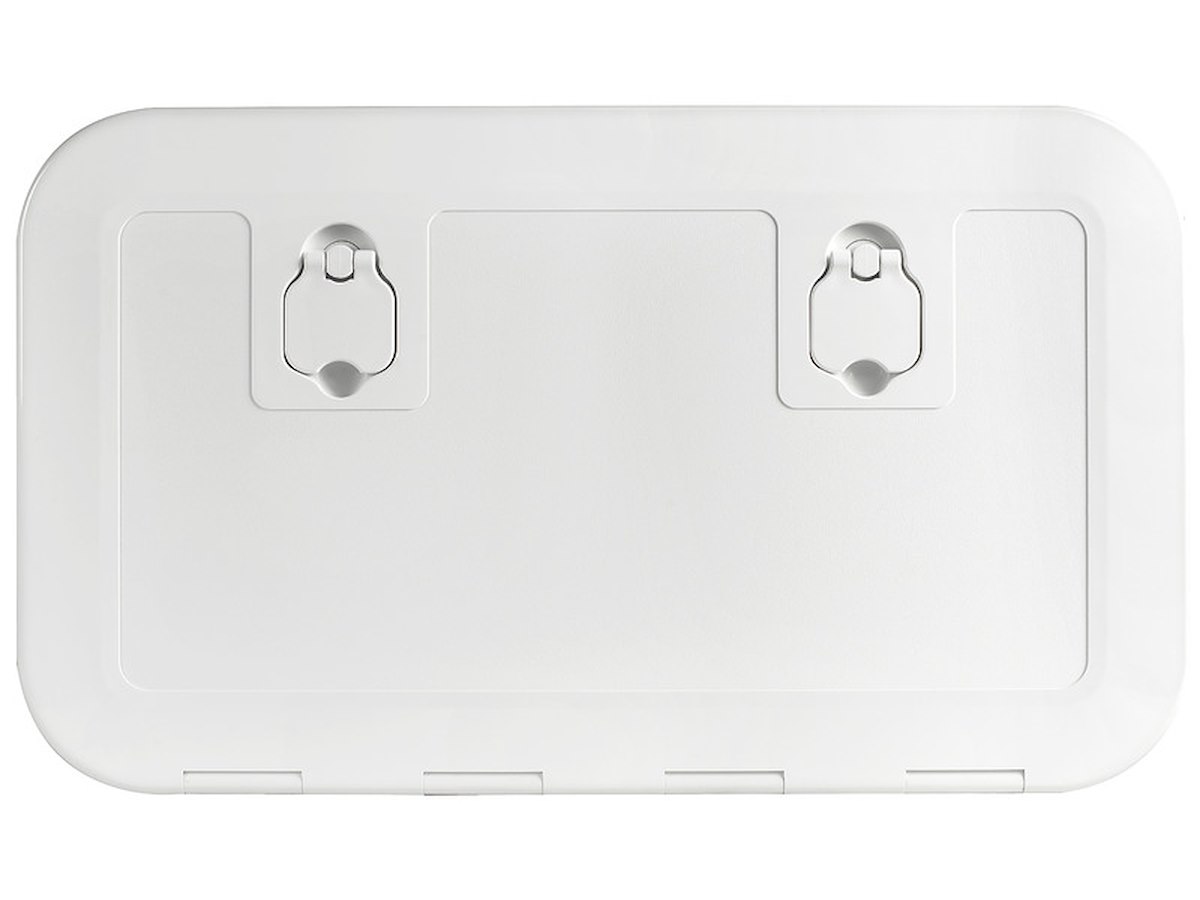 Variante: COLORE_bianco_pieno Bianco Esterno mm: 600x350 Interno mm: 513x265 Taglio mm: 530x280 Kit serratura a installazione immediata OPTIONAL: [20.093.00]