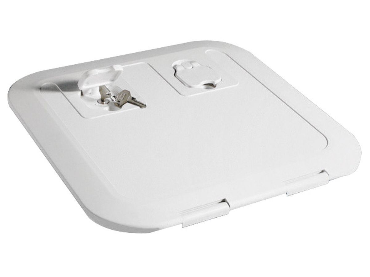 Coperchio carenato, nasconde totalmente il telaio. Cerniere completamente a filo. Apertura a 180°. Perfettamente pedonabili. Resistente UV BASF.