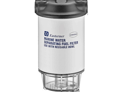 filtro decantatore 10 micron, con vaschetta trasparente per motori fuoribordo di medio/alta potenza, portata max 180 lt/h Ø mm 92x280h, sporg. 105