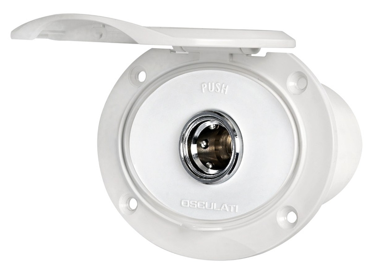 Si collega alla rete idrica di bordo (acqua dolce) o alla pompa Washdown (acqua salata) e mantiene in pressione la linea. Il tubo di lavaggio si innesta a scatto nella presa e fa automaticamente partire la pompa. Box in ASA resistente agli UV con inserto in acciaio inox AISI 316, meccanismo in ottone cromato.