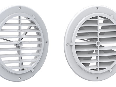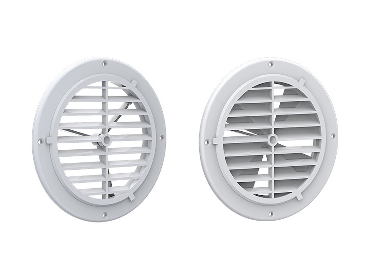 presa d'aria realizzata in pp UV resistant, modello con areazione fissa o con alette per la regolazione del flusso d'aria, Ø esterno 164 mm colore bianco