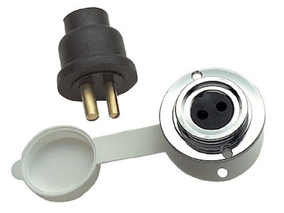 presa in ottone cromato Ø35mm, spina in gomma 2 poli