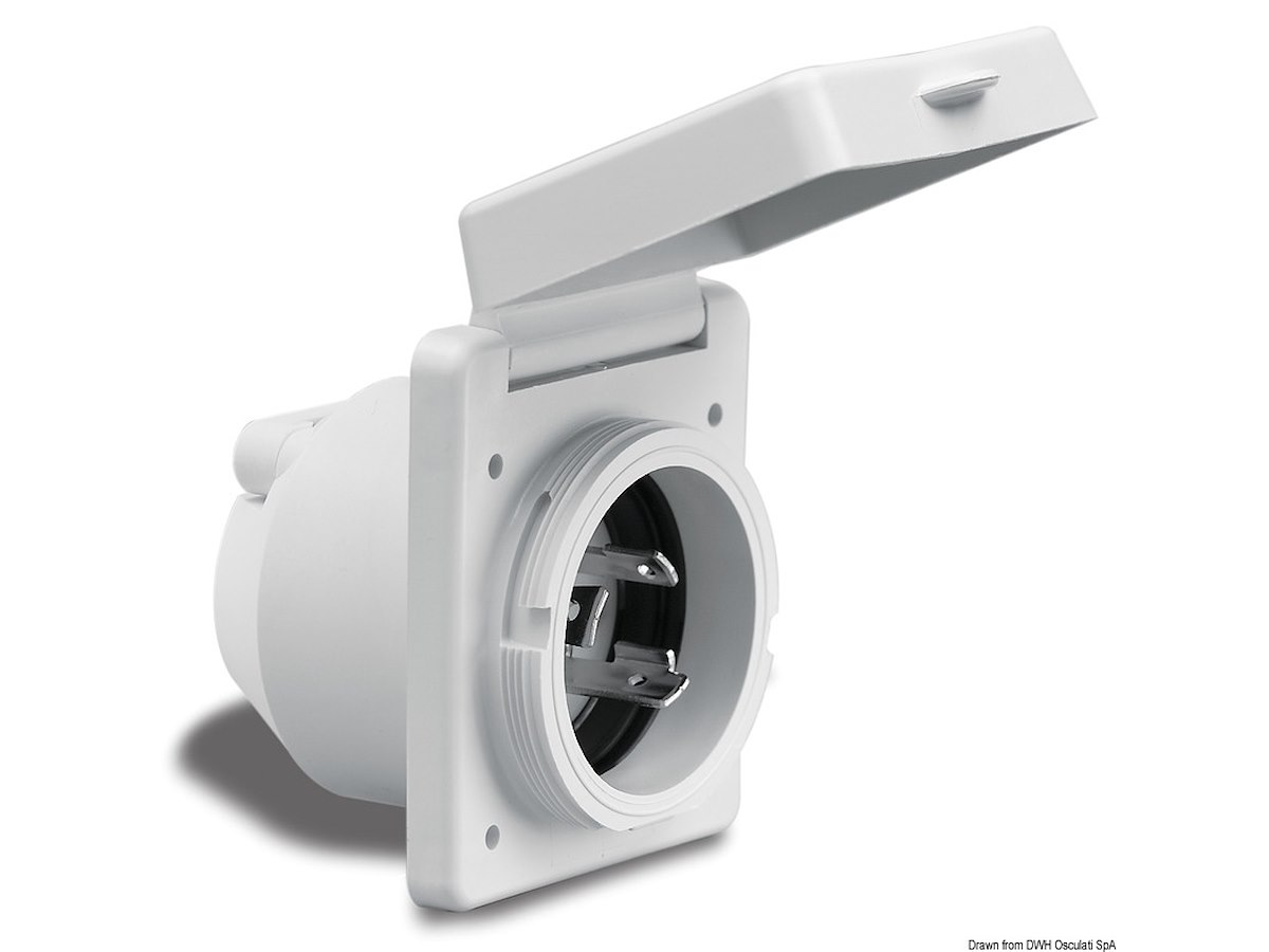 • Descrizione: Presa 3 fili maschio con protezione posteriore cavi in resina “Valox”. IP56