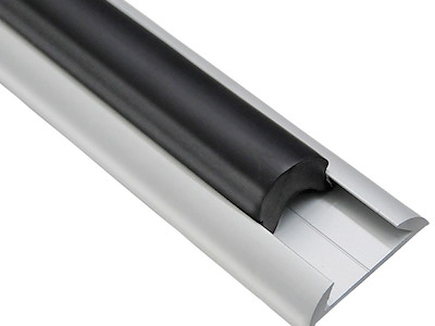 Con inserti in PVC flessibile in vari colori e terminabili da abbinare. Venduti in barre da 6 o 3 m.