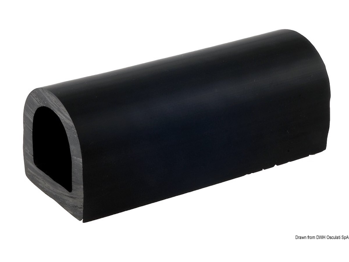 In PVC nero flessibile. Adatto anche a barche da lavoro. Spezzoni da m: 2 misure mm: 70 base x 70 sporgenza