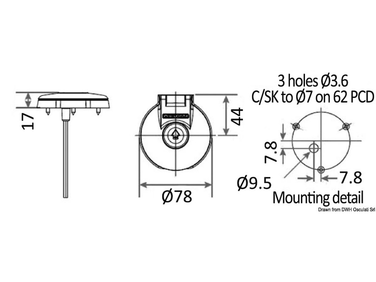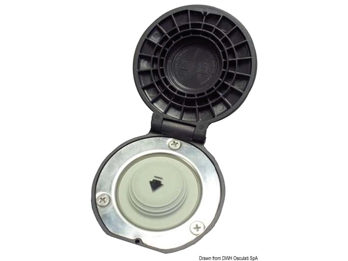 Realizzato in plastica rinforzata, completamente stagno e quindi adatto per il montaggio in coperta. Dotato di sportellino apribile; dimensioni particolarmente contenute.