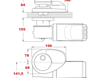 verricello con testa e base in acciaio inox, barbotin cima/catena Ø 105 mm, motore stagno IP67,riduttore in tecnopolimero, completo di control box, maniglia, sensore contametri e sistema manuale di caduta libera della catena, sistema di recupero manuale d’emergenza e dispositivo tendicima. indicato per imbarcazioni da 8 a 13 mt (26-43ft)