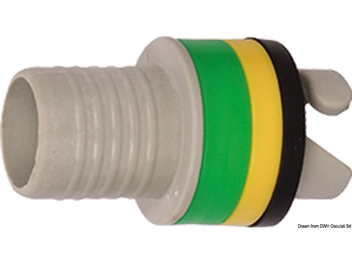 Raccordo con attacco a baionetta tra tubo gonfiatore (Ø 20 mm) e valvole di gonfiaggio tipo 66.446.64; 66.446.65 e altre equivalenti (Halkey Roberts, Ceredi ecc).