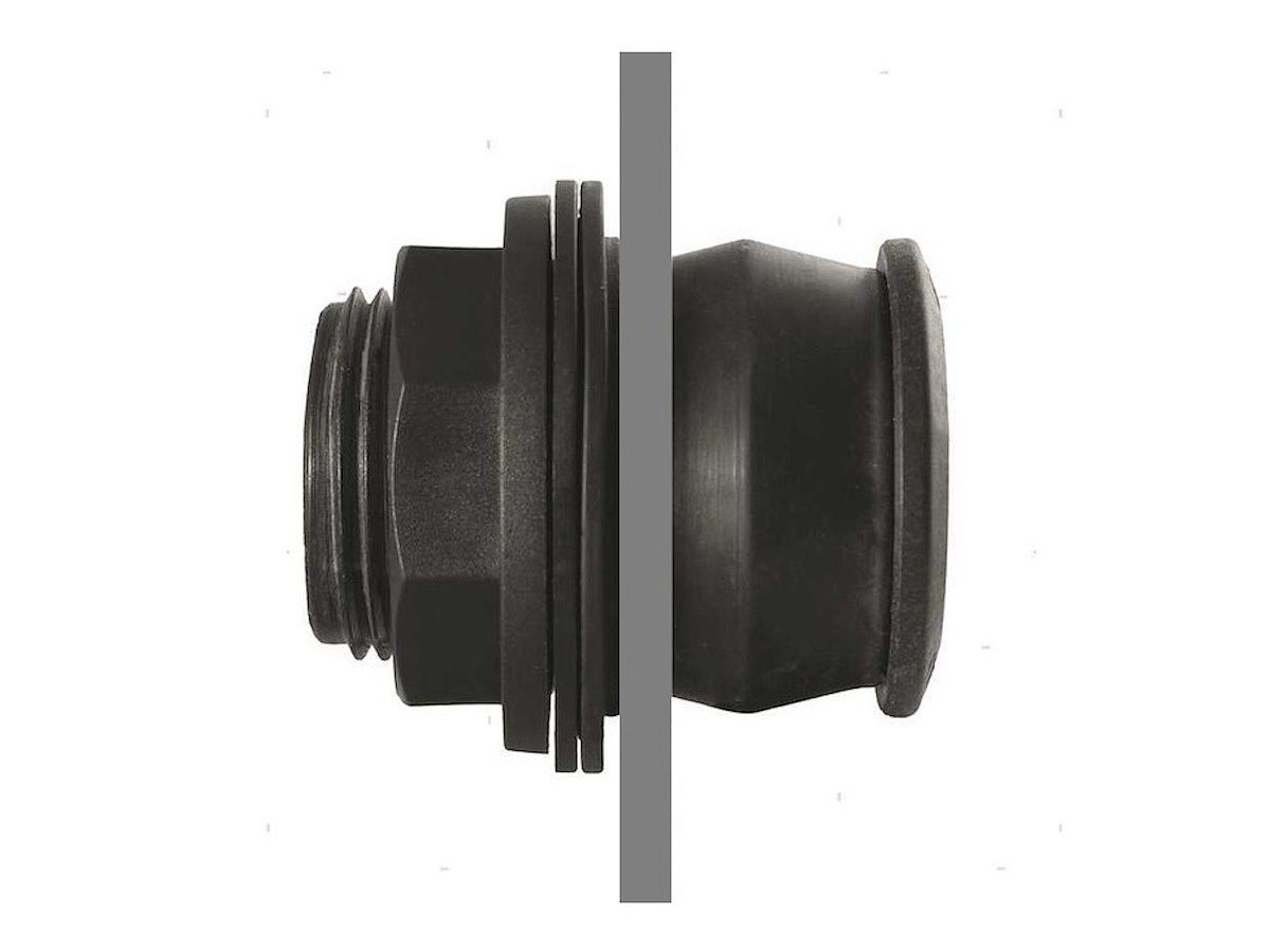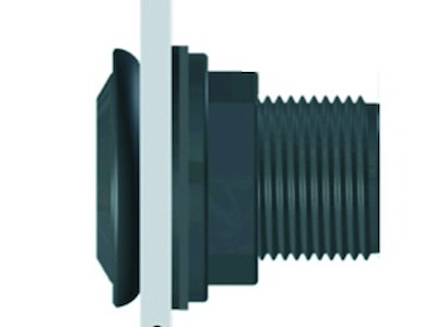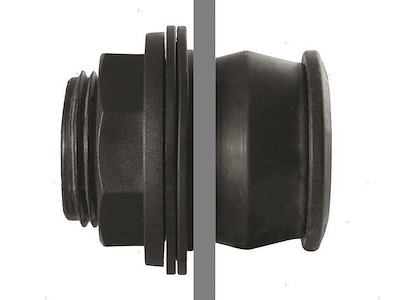 raccordo a innesto rapido in PP per paratie di serbatoi, permette il montaggio dall'esterno con una perfetta tenuta stagna, avvitandolo su se stesso la guarnizione in EPDM alimentare si comprime e si fissa alla parete.