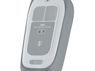 nuovo trasmettitore galleggiante RRC PLUS, ideale per azionare salpa ancora o passerelle, guscio in gomma anti-urto e anti-scivolo con pulsanti in silicone retro-illuminati, alimentazione universale 12/24V, utilizzabile anche con batterie ricaricabili