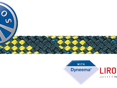 DYNEEMA SK78 di alta qualità, leggera ed estremamente resistente, minimo allungamento e altissima resistenza alle abrasioni, colore blu/giallo