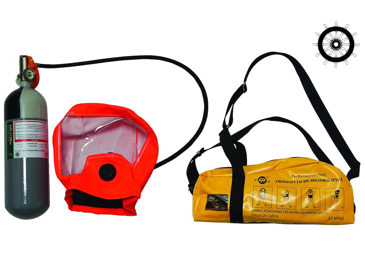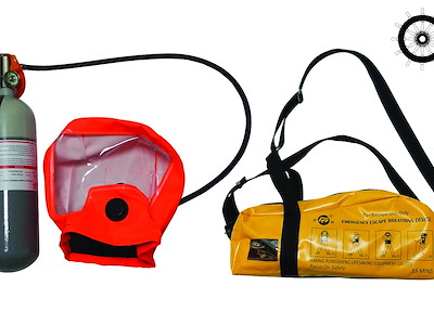 Emergency Escape Breathing Device (E.E.B.D.). Dispositivo di respirazione per fuga d’emergenza. Permette l’allontanamento in sicurezza dalle zone di pericolo, garantendo una corretta respirazione. Certificato SOLAS M.E.D.