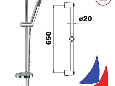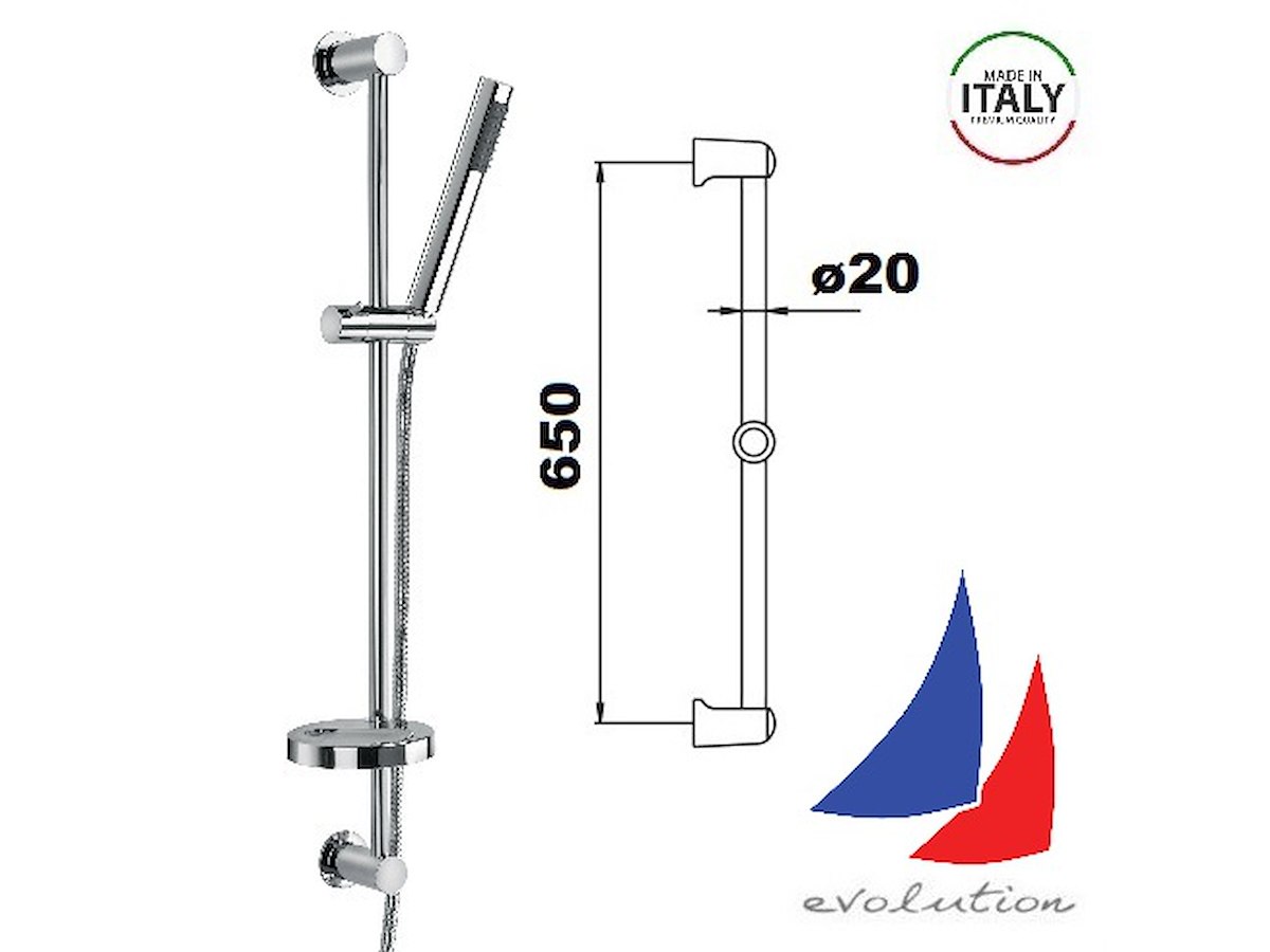 saliscendi cromato per doccia versione minimal, completo di portasapone, flessibile SILVER 150cm e doccetta cilindrica round