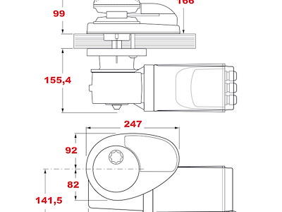 verricello con testa e base in acciaio inox, motore stagno IP67,riduttore in tecnopolimero, completo di control box, maniglia, sensore contametri e sistema manuale di caduta libera della catena, sistema di recupero manuale d’emergenza e dispositivo tendicima. indicato per imbarcazioni da 10 a 14 mt (33-46ft)