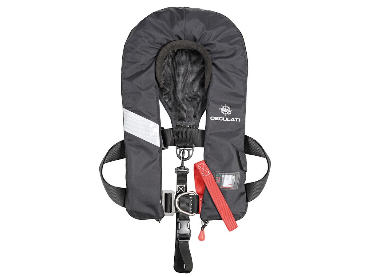 Gonfiaggio automatico idrostatico Hammar (questo sistema annulla la possibilità di gonfiaggio fortuito); Cintura di sicurezza incorporata omologata ISO 12401; 25% più compatta delle classiche cinture autogonfiabili: movimenti facilitati;
