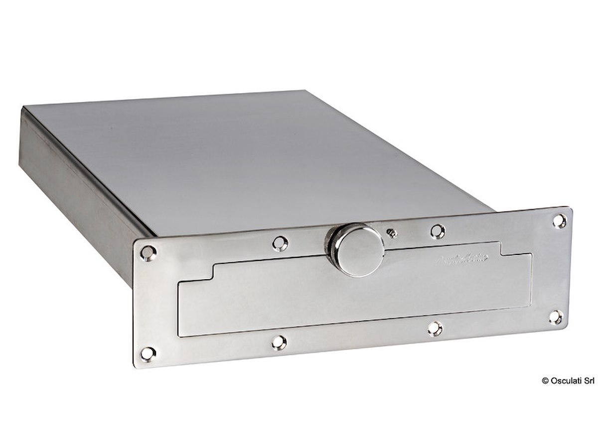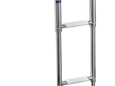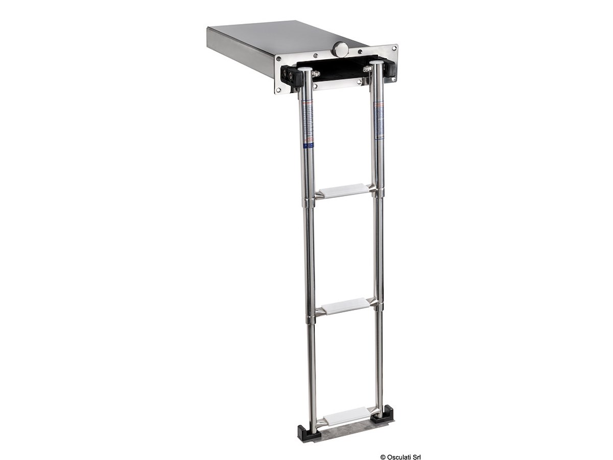 Scaletta telescopica ad incasso compatta da 3 gradini + box da incorporare nello spessore della plancetta. Le sue dimensioni ridotte la rendono ideale per le imbarcazioni più piccole.