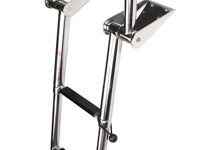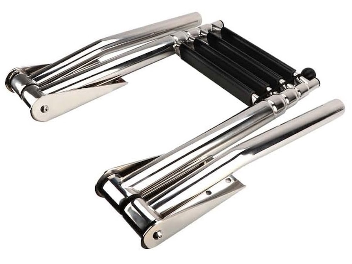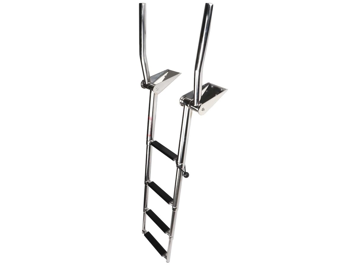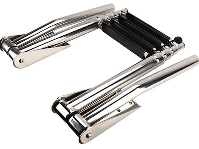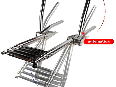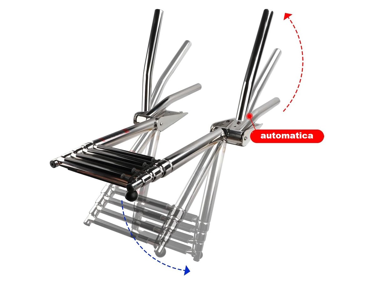 scaletta telescopica in AISI 316 per installazione sopraplancetta, completa di maniglie con apertura automatica quando si estrae la scaletta