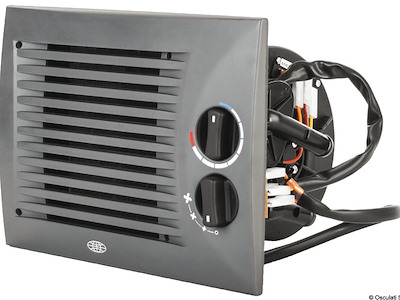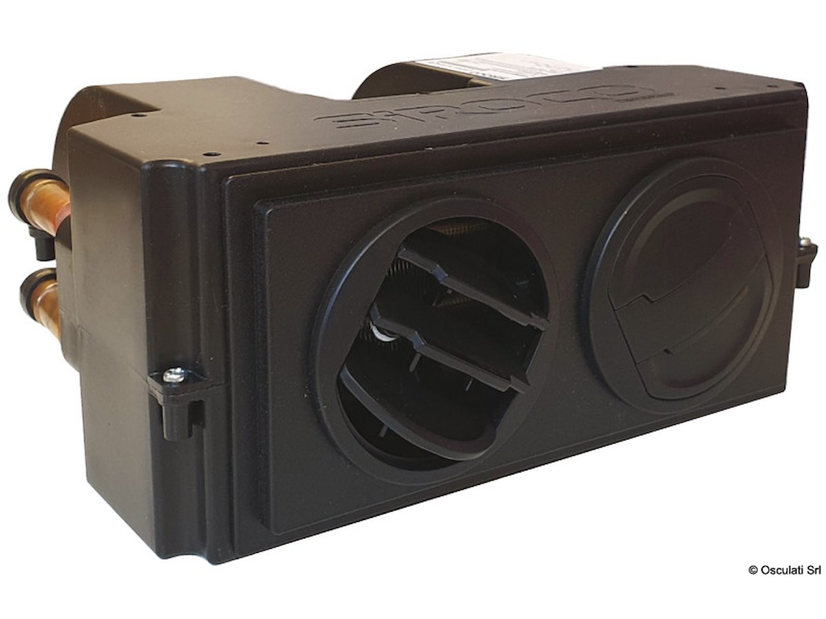 Scambiatori di calore con ventola attiva integrata per riscaldatori a liquido Autoterm Flow. Ricevono l'acqua generata dalla caldaia tipo 50.261.12 - 50.262.12/24 e distribuiscono aria calda. Per le versioni senza interruttore integrato si può collegare un qualsiasi termostato e/o interruttore con una o due velocità (tipo 50.266.30).