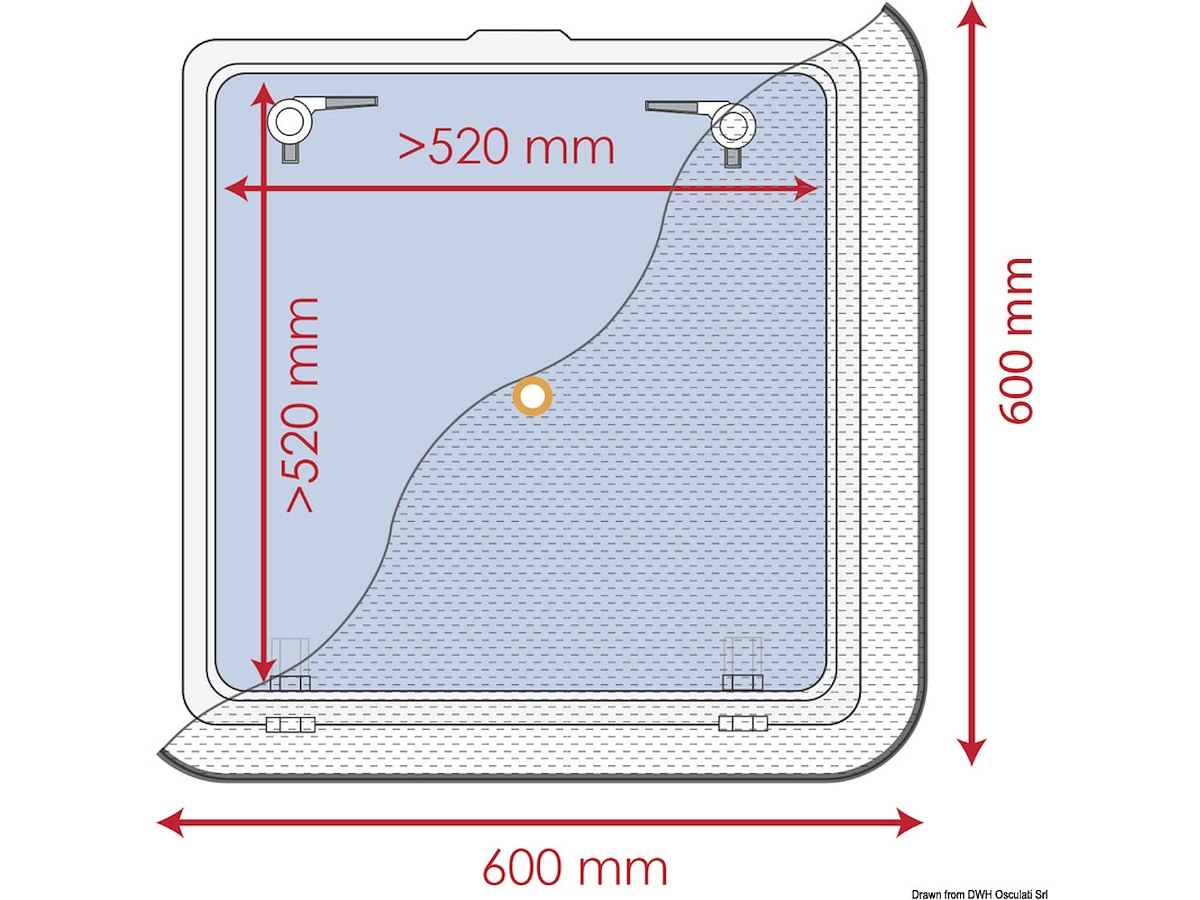 misure esterne mm: 600x600 Adatti per passauomo max mm: 520x520 Fissaggio: Ventosa/magnetico